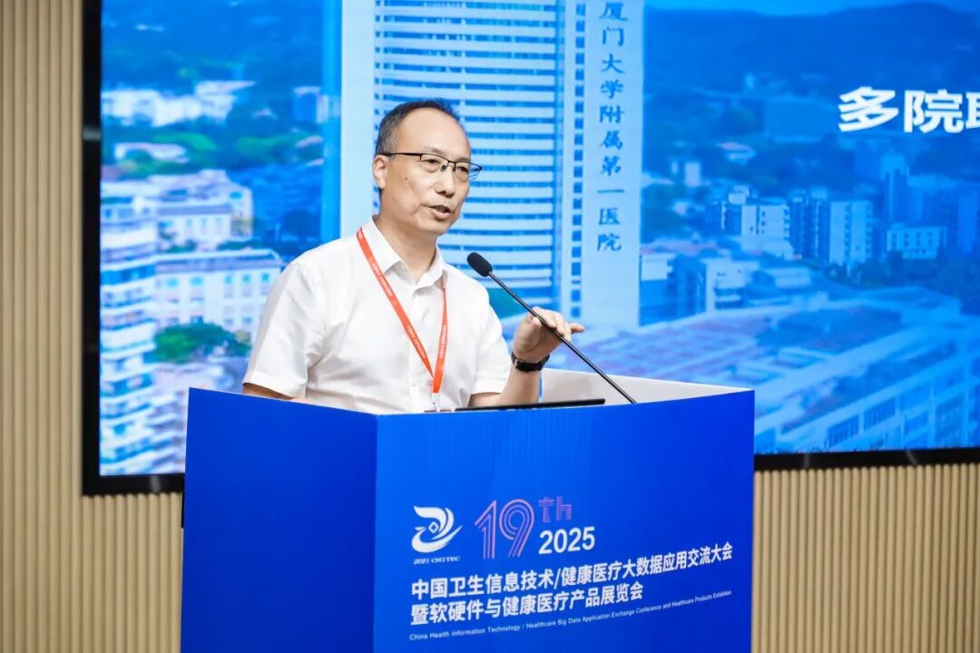 厦门大学附属第一医院党委委员、总会计师段智文以《三甲引领·数智共享——多院联动智慧服务创新实践分享》为主题展开分享,介绍了该院作为国家首批分级诊疗试点城市最大公立医院,以信息化手段为支撑,为推进优质医疗资源下沉,以"技术赋能+场景创新"为抓手,积极推进多院区与基层医疗合作,并探索“三师共管”慢病分级诊疗模式,积极引导优质医疗资源下沉,构建了区域医疗云、区域影像调阅、门诊统一预约平台以及医院心电联盟等数据信息共享交换等应用场景。未来将进一步整合医疗资源,持续深化数智赋能,为多院区和基层医疗机构的合作提供样板。