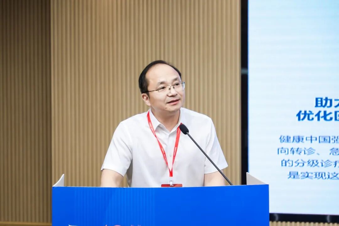 国家卫生健康委人口文化发展中心副主任刘健在致辞中表示,当下数智技术正重塑医疗健康服务格局,成为破解资源不均、提升同质化水平的核心引擎。在健康中国建设关键期,县域医共体与城市医联体的数智化转型已成“必答题”。在县域层面,数智技术通过统一信息平台实现优质资源下沉,远程诊疗和AI辅助诊断让基层服务更精准,大数据分析助力健康管理,正推动医共体从“物理联合”迈向“能力融合”;在城市层面,数智赋能打通医联体“信息动脉”,助力智能转诊和资源优化,构建高效分级诊疗体系,提升服务效能。他希望此次论坛能激荡智慧火花,凝聚行动共识,共绘数智赋能医共体与医联体建设的壮丽图景,为健康中国筑牢坚实根基。